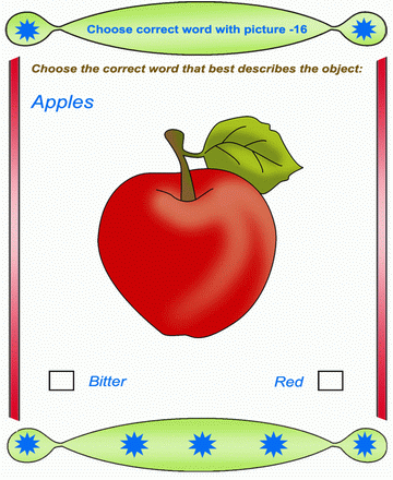 It is practice worksheet 16 of describing words. Select the answer by choosing correct option