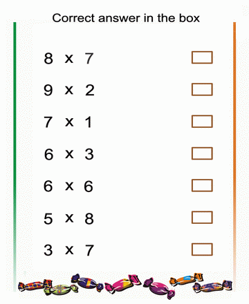 It is practice worksheet 10 for Mathematics fundamental operation. Write the correct answer in the box.