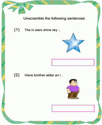 It is practice worksheet 22 for jumbled sentences. Rearrange the sentence