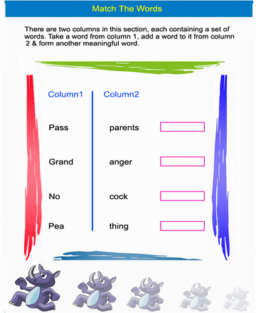 It is practice worksheet 8 for matching words. Match the word from column 1 to 2 and form a meaningful word