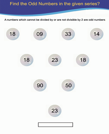 It is practice worksheet 4 for finding the Odd number. Find the Odd number in the given series