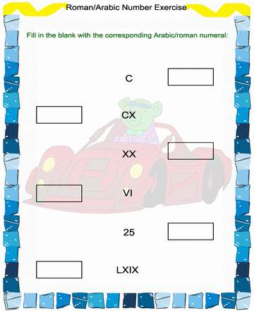 Printable Roman Numbers 18Worksheet for Kids