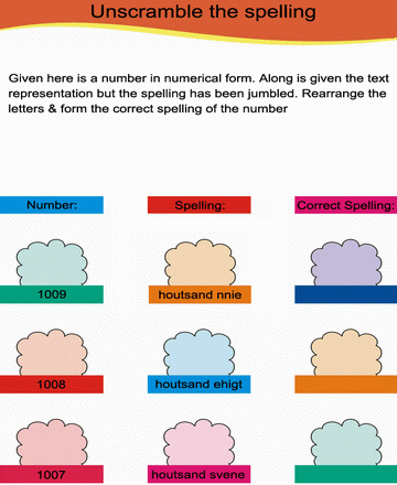 It is practice worksheet 40 for unscramble the spelling. Rearrange the letters and form the correct spelling of the number.