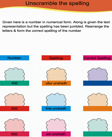 It is practice worksheet 47 for unscramble the spelling. Rearrange the letters and form the correct spelling of the number.