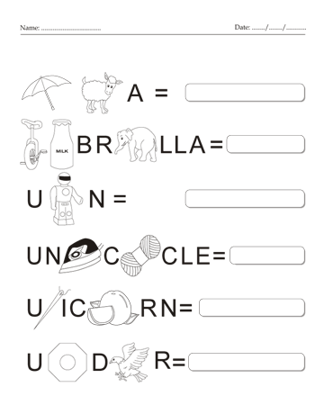 Complete the word 21 : A new method to learn words start with Alphabet 'A'. You can see pictures in place of blank. Identify these pictures and write the first letter they are starting with. You will find a meaningful word after filling up the entire blan